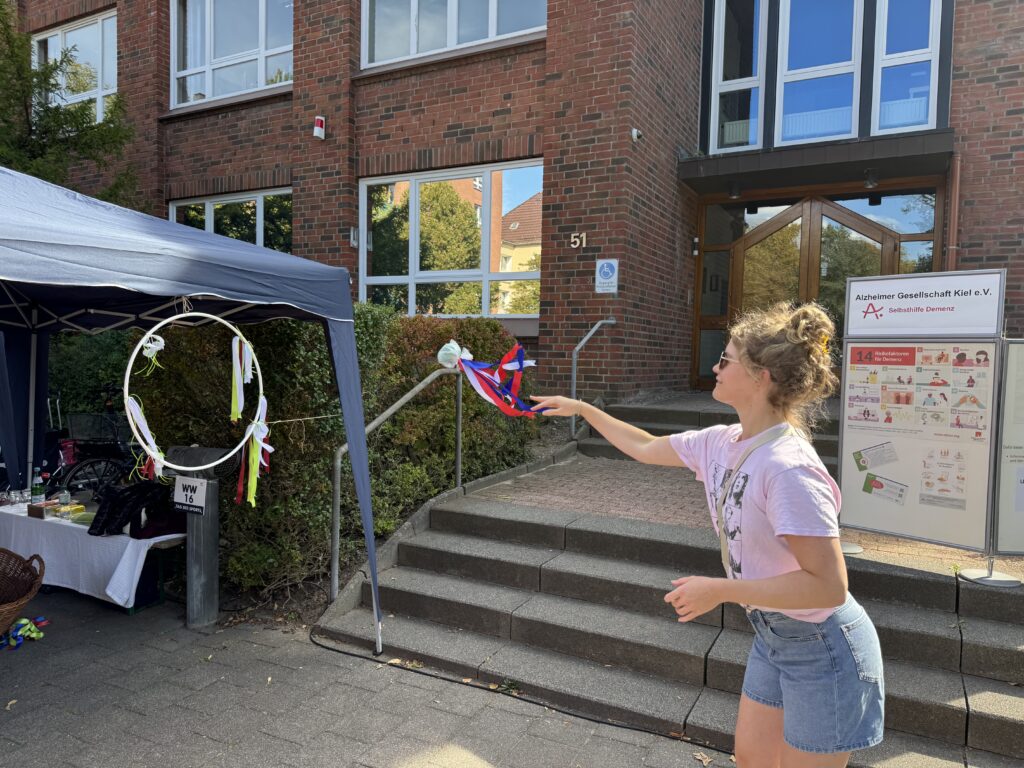 Auch in diesem Jahr war die Alzheimer Gesellschaft Kiel e.V. beim Tag des Sports vom LSV mit dabei. Wir konnten viele interessierte Besucher:innen beraten, Fragen beantworten und ins Gespräch kommen. ein kleiner netter Austausch war jederzeit möglich – das hat uns besonders gefreut. Natürlich durfte auch der sportliche teil nicht fehlen: Bei uns konnten die Gäste ihr Geschick beim Schweifballwurf ins Körbchen ausprobieren. Ein herzliches Dank an alle, die vorbei geschaut haben – wir freuen uns schon auf das nächste Mal.