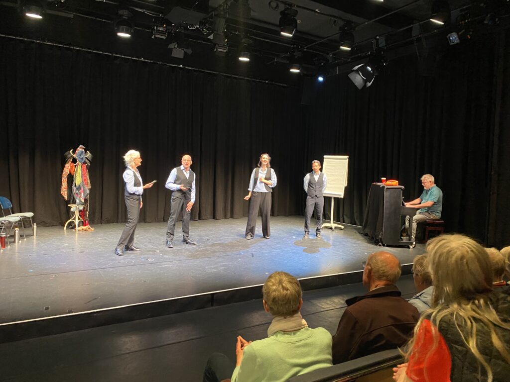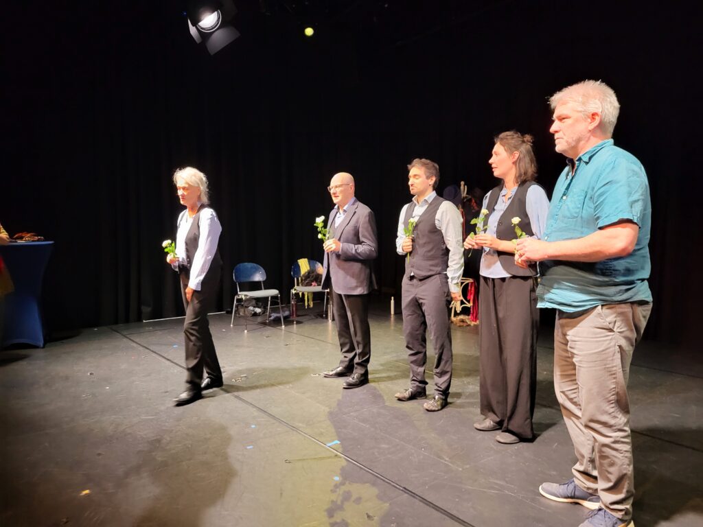 Mit viel Applaus für das Schauspielteam Dagmar Richter, Diana Schiepers, Reiner Wiese und Peter Rösch endete die erfolgreiche Premiere. Der in der Überschrift zitierte Originalton wurde durch den Wunsch nach einer wiederholten Aufführung von vielen Zuschauenden unterstrichen. Als Chorsänger kann ich die Aufforderung des Pianisten Jens Schlieker zu singen, denn das befreit und schafft zudem Gemeinschaft, nur unterschreiben. Also ab in die Chöre. Übrigens, demnächst erscheint eine Demenzpartner Schulung mit Schulungsmaterial für Chöre und Instrumentalensembles. Melden sie sich gerne: www.alzheimer-kiel.de.